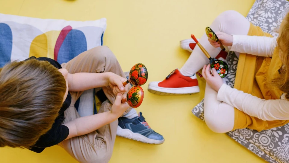 Børn i alderen 1 til 5 år lærer at være en del af en gruppe. Vi bruger mange redskaber f.eks. tørklæder, sandposer, faldskærm og bolde. Sammen med mor eller far udforsker vi trygt musikken gennem lege, dans og spil på små instrumenter som xylofoner, rasleæg og trommer.